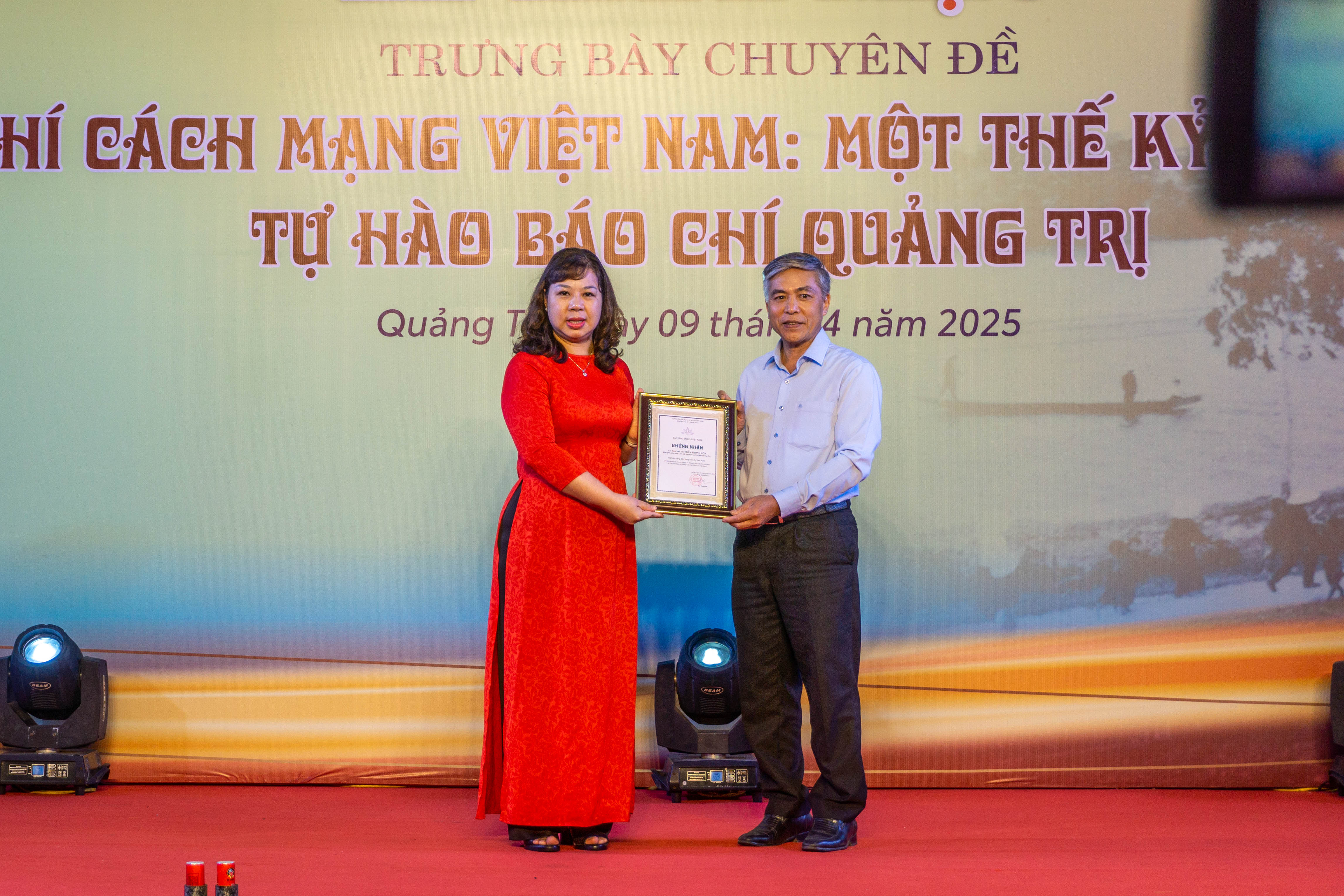Trưng bày chuyên đề “Báo chí cách mạng Việt Nam: Một thế kỷ xung trận và tự hào báo chí Quảng Trị” do Hội Nhà báo tỉnh Quảng Trị phối hợp Hội Nhà báo Việt Nam - Bảo tàng Báo chí Việt Nam tổ chức tại thành phố Đông Hà, tỉnh Quảng Trị, ngày 9/4/2025. Đây là hoạt động chào mừng kỷ niệm 50 năm Ngày giải phóng miền Nam, thống nhất đất nước; 53 năm Ngày giải phóng Quảng Trị; 100 năm Ngày báo chí cách mạng Việt Nam; 75 năm Ngày thành lập Hội Nhà báo Việt Nam.