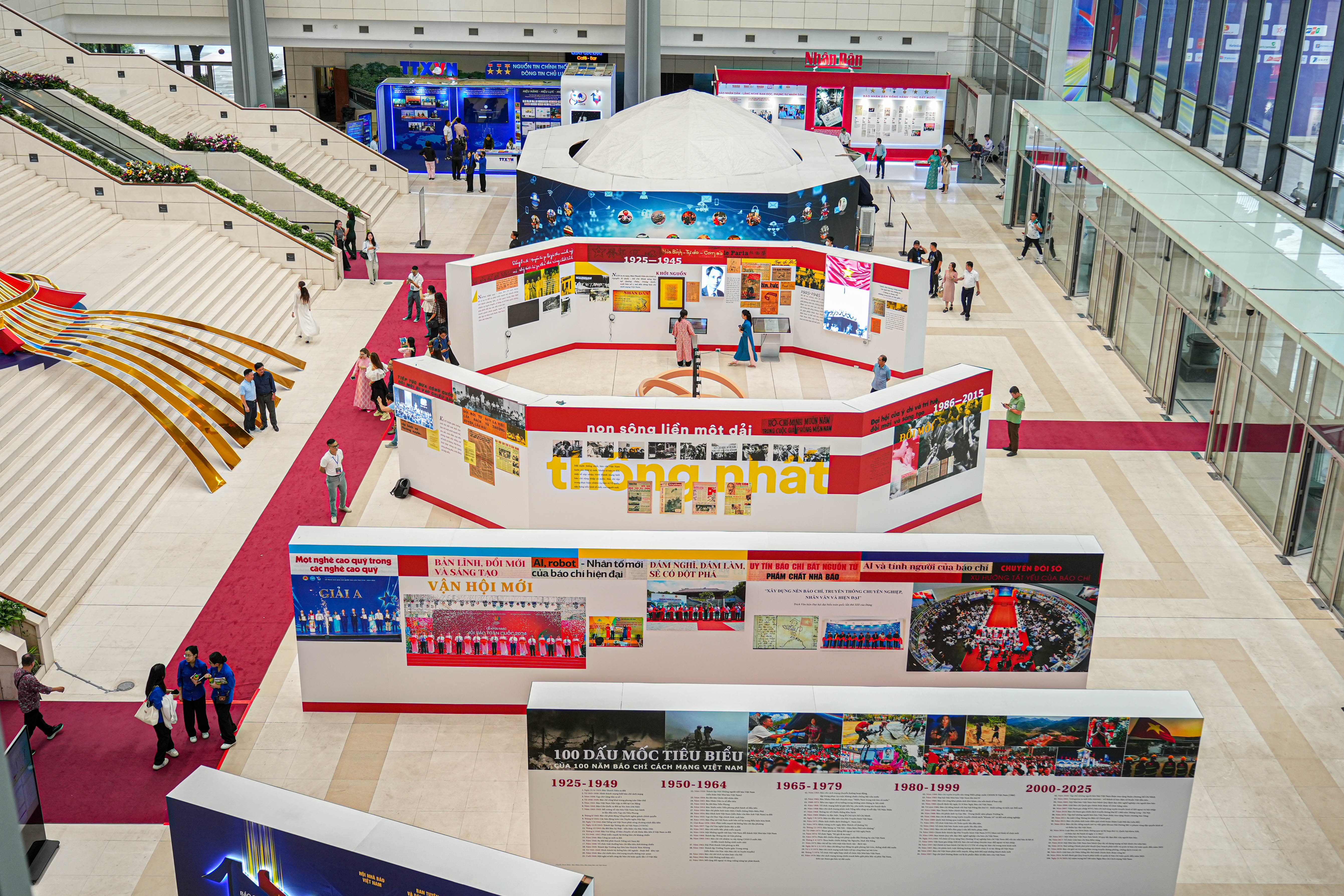 Không gian trưng bày “100 năm Báo chí Cách mạng Việt Nam (1925–2025)” do Bảo tàng Báo chí Việt Nam thực hiện thu hút sự quan tâm đặc biệt của đông đảo đại biểu, nhà báo, sinh viên và công chúng. Hoạt động này nằm trong khuôn khổ Hội Báo toàn quốc 2025, diễn ra từ ngày 19-21/6/2025 tại Trung tâm Hội nghị Quốc gia.
